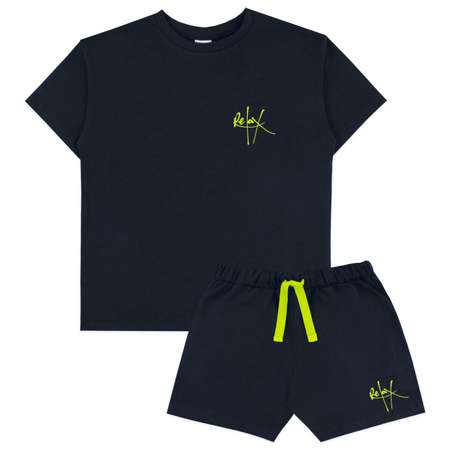 Комплект футболка и шорты для мальчика черного цвета, небольшая надпись
