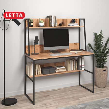 Стол LETTA Рабочий Tokyo с надстройкой Дуб Вотан Черный металл 1200х1400х520
