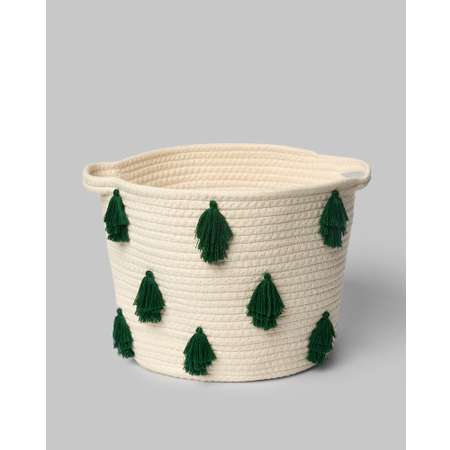 Плетёная корзина для хранения Futurino Home с объёмным новогодним декором в виде ёлочек-кисточек создаст атмосферу праздника в детской комнате. Выполненная из качественного текстиля, она не только хорошо держит форму, но и обладает высокой прочностью и износостойкостью. Стильный уютный дизайн позволяет использовать ее в любом интерьере, создавая новогоднее настроение!