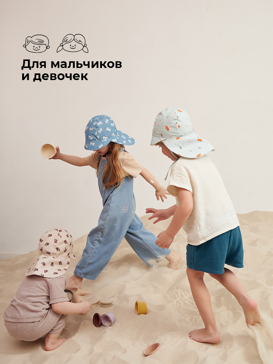 Стильная детская панама из натурального хлопка — оригинальный дизайн с козырьком и удлинённой задней частью для надежной защиты от солнца. Универсальная модель подходит как для мальчиков, так и для девочек, обеспечивая максимальную защиту лица, ушек и шеи в жаркие часы.
