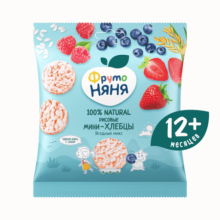 Мини-хлебцы ФрутоНяня рисовые с яблоком клубникой черникой и малиной Ягодный микс 30г