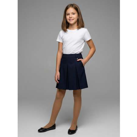 Юбка-шорты для девочек младшего и среднего школьного возраста. Выполнены из однотонной смесовой ткани синего цвета. Юбка-шорты на подкройном поясе. Внутренняя обтачка пояса выполнена из ткани в клетку. Передняя и задняя половинки юбки-шорт с центральной встречной складкой и двумя односторонними складками, направленными к боковому шву. Сверху складки частично застрочены. Сзади и спереди на поясе по 2 шлевки для ремешка. Ремень в состав изделия не входит. Застежка в левом боковом шве на потайную «молнию». При выборе размера, просьба ориентироваться на размерную сетку в фото к товару. Обращаем Ваше внимание, что правильное определение размера детской одежды напрямую зависит от индивидуальных особенностей ребёнка. Добавьте наш брэнд Sky Lake в любимые бренды, чтобы первыми видеть поступление новинок Скай Лэйк.
