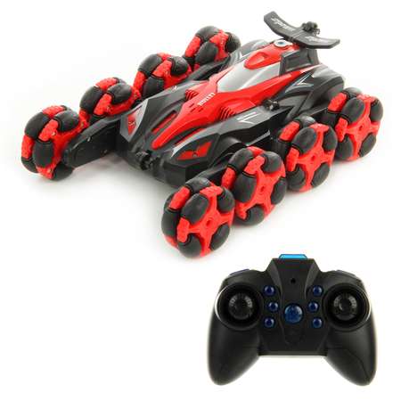 Машина на радиоуправлении с функцией пара и эффектной подсветкой. Машинка трансформер, меняющая положение колес, несколько моделей транспорта в одной игрушке, делаем колеса в два яруса, выбираем нужный угол подвески. 8 трансформирующихся колес позволяют сделать машинку вездеход с высокой подвеской, такая машина проедет практически по любой местности. Игрушечная машина проста в управлении, пульт удобно ложится в руки.