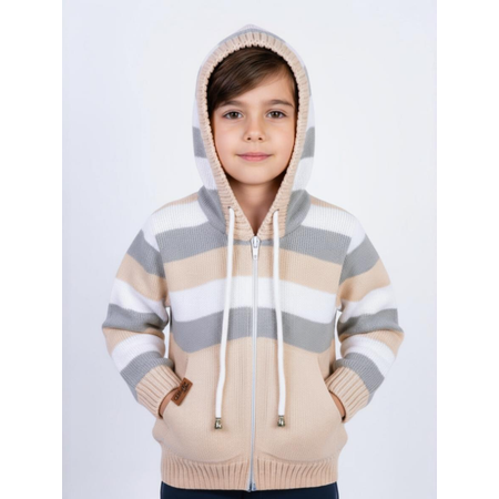 Изделие с уютным капюшоном на шнурке, застежкой-молнией спереди. Данная модель представляет собой стильный жакет на молнии для девочек и мальчиков. На рукавах манжеты вывязаны резинкой. Украшен кардиган рельефной вязкой. Гармоничное сочетание сдержанных цветов придает особый стиль этой вещи.
