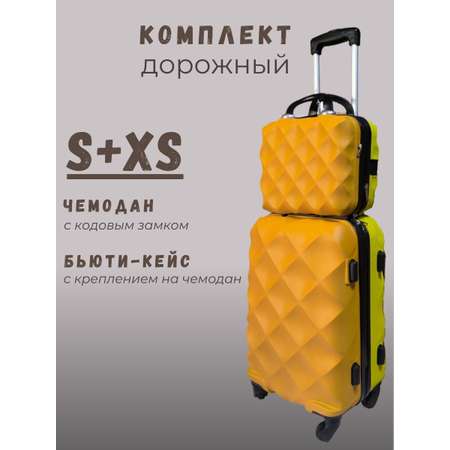 Набор дорожных аксессуаров состоит из бьюти-кейса и маленького чемодана размера S. Сумка с креплением на ручку чемодана подходит под требования всех авиакомпаний. Вмещает до 14 литров - можно взять с собой на борт самолета перекус, косметичку и вещи, необходимые в дороге. Маленький пластиковый чемодан на колесиках размера S+. Он более вместительный - его объем 49 литров. Этого достаточно для вещей на 1-2 недели путешествий.