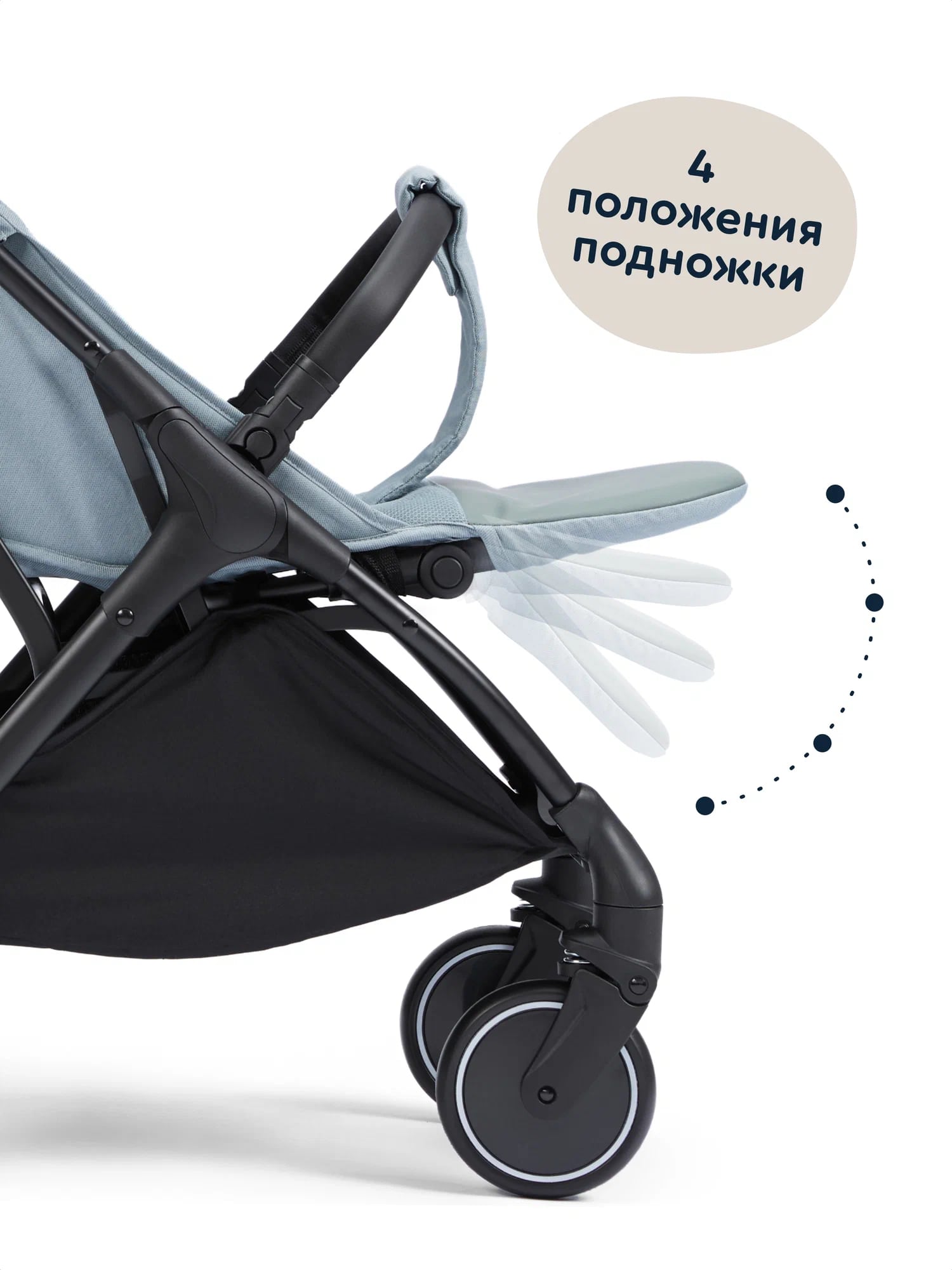Junion Sizzi безопасная и продуманная: пятиточечные ремни безопасности с нескользящими накладками надёжно удерживают малыша во время прогулки. Для дополнительного комфорта есть разделитель для ножек. Наклон спинки настраивается ремнём, а у подножки есть 4 функциональных положения.