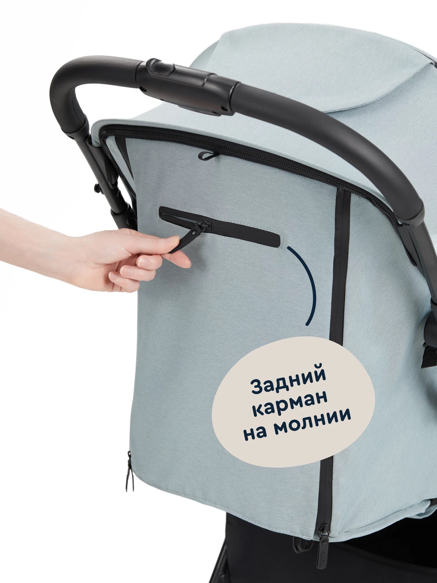 В комплекте — съёмный бампер и подставка для ножек из экокожи, дождевик и москитная сетка. На спинке — сеточка-вентиляция на случай жары. В задний карман на молнии удобно складывать полезные мелочи, а во вместительную корзину — любимые игрушки и покупки. Удобный подстаканник пригодится для воды или напитков.