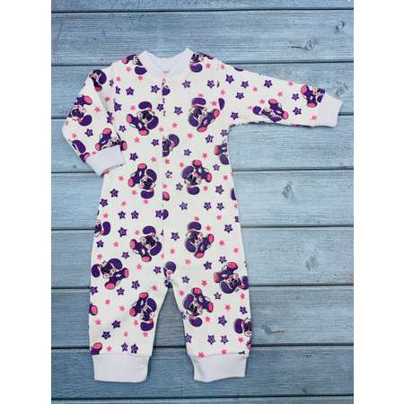 Детский нательный комбинезон на кнопках с длинными рукавами и закрытыми ножками (лапками) для новорожденных, малышей и грудничков. Данная модель универсальна и может использоваться как наряд для прогулки, пижама для сна или домашняя одежда для повседневной носки. Комбинезон оформлен принтом. На рукавах изделия эластичные манжеты, не стягивающие запястья. Сделано в России.
