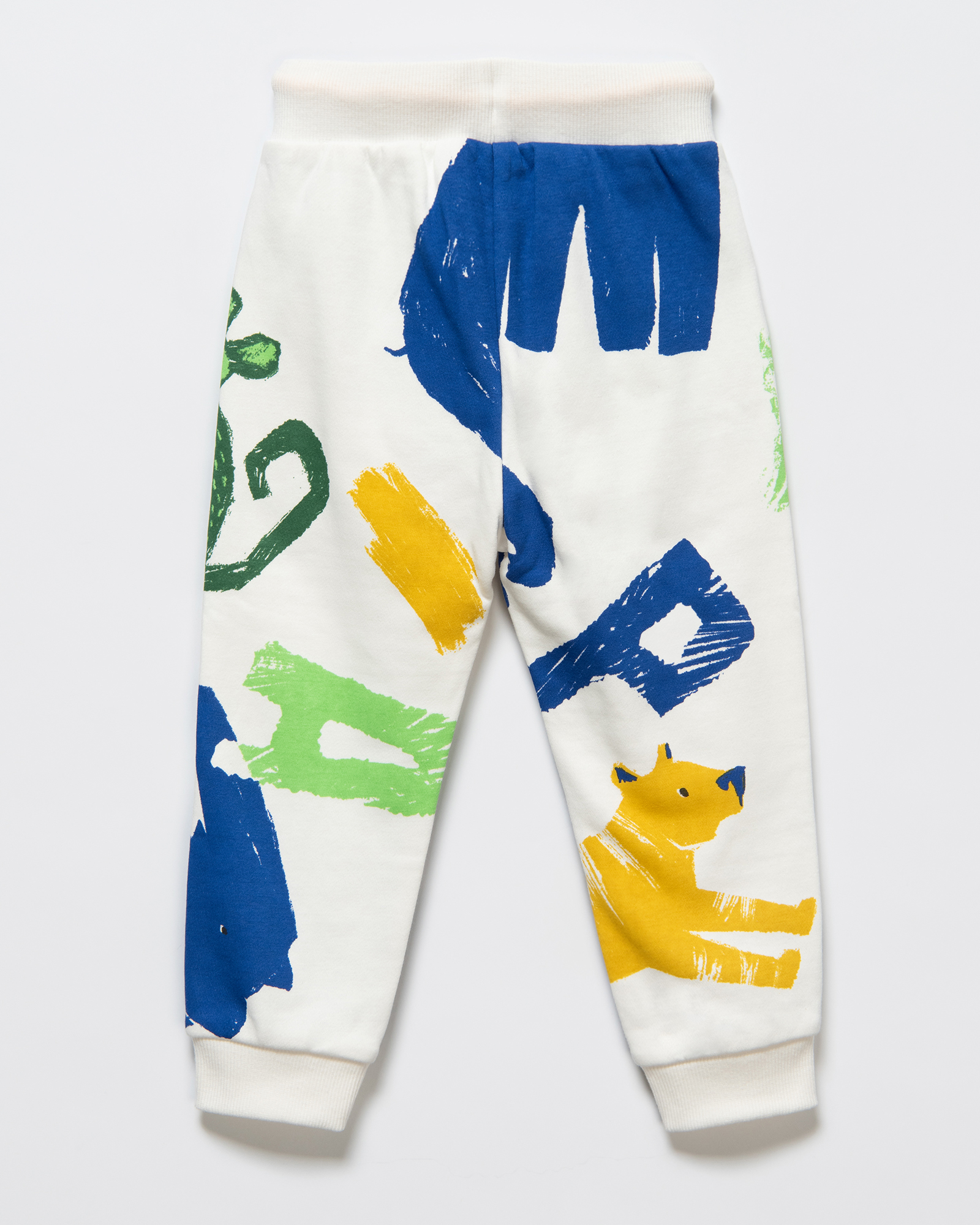 Белые брюки для мальчика Baby Gо Trend с цветным принтом.