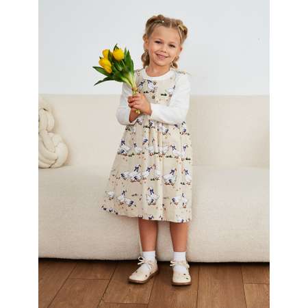 Платье-сарафан льняной на лямках для девочки “Озорные гуси” от MOUN- идеальный выбор для дня рождения, праздника, утренника, посещения детского сада, и на каждый день.
