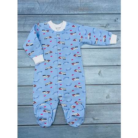 Детский нательный комбинезон на кнопках с длинными рукавами и закрытыми ножками (лапками) для новорожденных, малышей и грудничков. Данная модель универсальна и может использоваться как наряд для прогулки, пижама для сна или домашняя одежда для повседневной носки. Комбинезон оформлен принтом. На рукавах изделия эластичные манжеты, не стягивающие запястья. Сделано в России.
