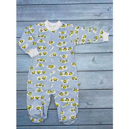Детский нательный комбинезон на кнопках с длинными рукавами и закрытыми ножками (лапками) для новорожденных, малышей и грудничков. Данная модель универсальна и может использоваться как наряд для прогулки, пижама для сна или домашняя одежда для повседневной носки. Комбинезон оформлен принтом. На рукавах изделия эластичные манжеты, не стягивающие запястья. Сделано в России.