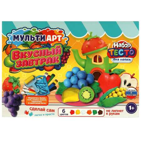 Набор для лепки со специальным тестом и формочками «Вкусный завтрак» ТМ «Мульти Арт» – отличный вариант для развития творческих способностей ребёнка:- 6 цветов теста - с формочками- в комплекте: формочки, вилка, нож, ложка, скалка, тарелочка- не липнет к рукам- инструкция на обороте упаковкиИспользуя тесто из набора, малыш сможет увлекательно провести время, самостоятельно или при помощи родителей вылепливая разнообразные поделки. А разнообразные формочки сделают игры с тестом ещё интереснее.Игра с тестом для лепки ТМ «Мульти Арт» знакомит ребёнка с формами и цветами и развивает:- мелкую моторику- координацию движений- воображение и фантазию- творческое мышлениеРазмер упаковки: 24 х 17 х 6 см.Рекомендовано детям от 1-го года.Цены в интернет-магазине могут отличаться от розничных магазинов.