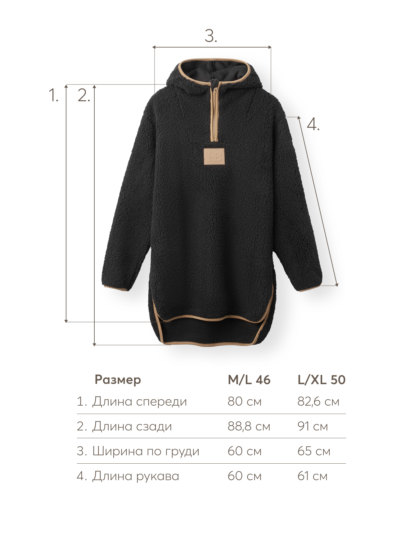 - Это вторая толстовка, которую купила, первая с листиками. Очень понравилась, мягкая, теплая и при этом лёгкая. Чёрная внутри чуть отличается от той, что с листьями, но суть одна — обе уютные. На рост 170 ещё пробовала размером меньше взять, кремовую, она была покороче, под куртку это удобнее, наверное, но в этой большой, как в пледе, поэтому выбрала две большие💚