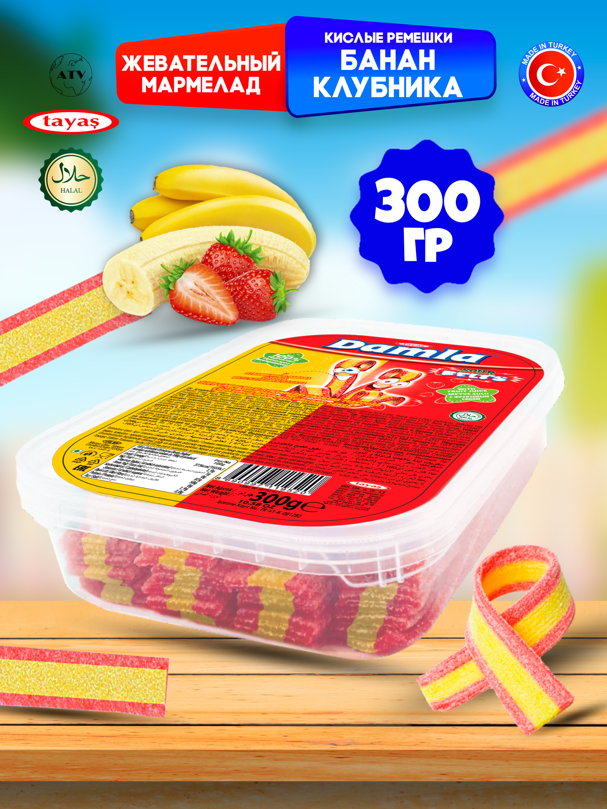 Жевательный мармелад TAYAS Кислые ремешки вкус банан-клубника 300 грамм