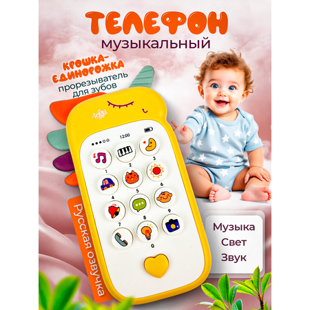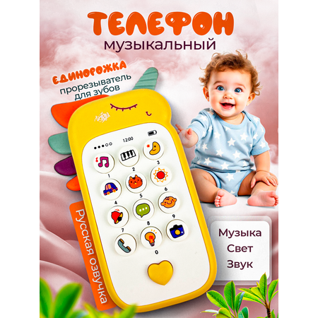 Телефон детский музыкальный. Развивающая игрушка Единорожка, игрушечный обучающий смартфон, более 12 различных звуков на русском языке