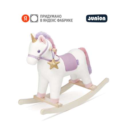 Лошадка-качалка Junion Мими-Мун — это игрушка, придуманная в Яндексе настоящими родителями. Пушистый Мими-Мун — это крошка-единорог из волшебного мира. Мими-Мун любит созвездия, наблюдать за Леденцовым сиянием (его можно заметить холодными зимними вечерами) и мечтать на Клеверной Полянке. Отыскивать там счастливые четырехлистники и загадывать желания. А ещё — гулять со своими друзьями: маленьким Биби-Бомом и непоседливым Тукки-Туком. Игрушка-качалка пушистая и приятная на ощупь, с разноцветными деталями и вышивкой. У лошадки мягкое и удобное сиденье. Полозья изготовлены из натуральных материалов: деревянные и тщательно отшлифованные, для безопасных и увлекательных игр. Лошадка пушистая, с интересными деталями и плюшевым рогом. Аккуратные и прочные швы, устойчивая конструкция — чтобы ничего не отвлекало малыша от веселья. В комплекте — блестящая съёмная звёздочка. Ей можно украсить комнату или использовать как отдельную игрушку. И даже угостить Мими-Муна — волшебный крошка-единорог очень любит завтракать настоящими звёздочками с молоком. Игрушка помогает развивать баланс и координацию движений. Junion Мими-Мун знакомит малыша с окружающим миром, учит распознавать разные материалы и формы.