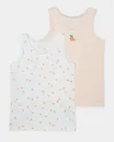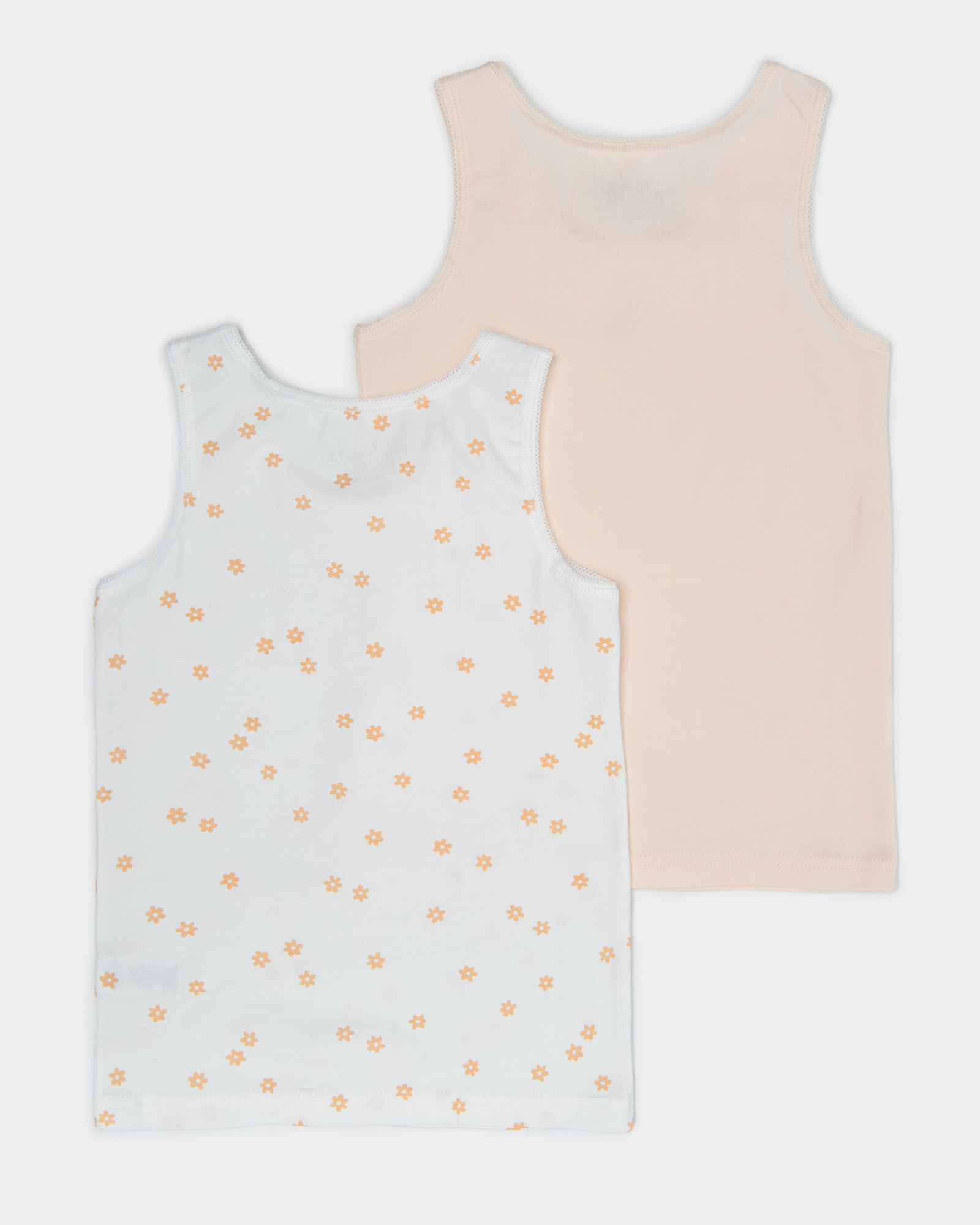 В комплекте Day and Night две майки для девочки, декорированные цветным принтом - белая и светло-оранжевая.