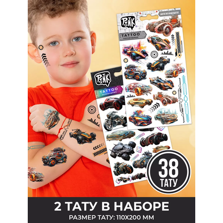 Переводные тату наклейки Машинки 2 листа в наборе