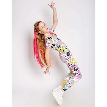 Стильный хлопковый костюм, топ и легинсы c яркой расцветкой из хлопка - не оставит равнодушными девочек. Комплект для девочки идеален для гимнастики и домашнего времяпровождения , трикотаж мягкий. Благодаря уникальной технологии печати по текстилю - яркий принт не линяет и не отстирывается даже после неограниченного количества стирок. Хлопковая ткань дышит , отлично впитывает влагу , мягкая на ощупь и приятная к телу. Топ и легинсы для девочки не сковывают движения, он отлично подходит для физкультуры , можно ходить в школу или детский сад, гулять на природе или заниматься спортом.