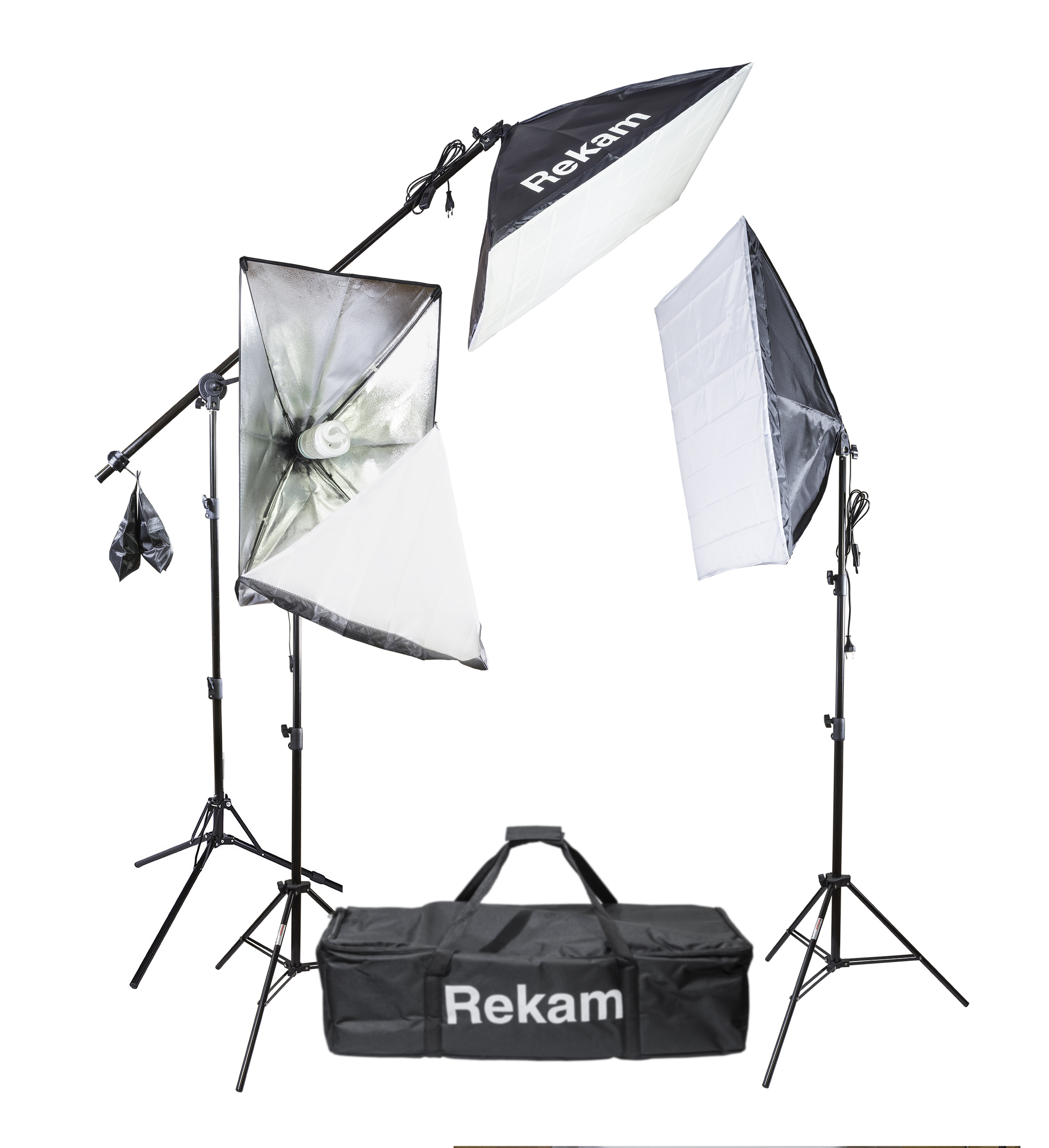 Комплект флуоресцентных осветителей Rekam CL-555-FL3-SB Boom Ki предназначен для съёмки крупных предметов, ростовых портретов, фотографий на документы или ведения видео блога.Комплект состоит из трёх нерегулируемых по мощности люминесцентных ламп по 185 Вт с цветовой температурой 5500°К; двух лёгких 3-х секционных стоек; одной 2-х секционной выдвижной телескопической штанги, одной 3-х секционной стойки для установки этой штанги; трёх осветителей с софтбоксами 50х70х40 см и одной тканевой сумки из полиэстера 400 ден, с застёжкой типа «молния» и двумя ручками для переноски.Наличие в комплекте светомоделирующих насадок - софтбоксов - позволяет:а) максимально смягчать контрастные участки и тени на объекте съёмки;б) значительно уменьшить блики отраженного света от объекта съёмки;в) избежать излишней засветки участков кожи при портретной съёмкеОсобенностью данного комплекта является наличие так называемого "журавля" - системы установки осветителя, состоящей из стойки и укреплённой на ней штанги. Эта система позволяет размещать осветитель таким образом, что его проекция на поверхность, где установлена стойка (например, пол), может значительно выходить за площадь опоры, определяемой "размахом" ног стойки. В случае такого размещения осветителя, для обеспечения положения устойчивого равновесия, в поставку штанги входят мешок, предназначенный для наполнения его различными сыпучими предмета (песок, гравий и т.п.) для создания "противовеса" и крепёжный механизм с крючком, обеспечивающие надёжную фиксацию такого противовеса на штанге. Входящий в поставку штанги механизм, закрепляющий её на стойке, также позволяет изменять угол наклона штанги относительно оси стойки.Таким образом, данная система установки - "журавль" - позволяет выбрать такое расположение осветителя, которое является недостижимым в случае использования обычных студийных стоек.Этот набор можно использовать также и для выездной съёмки, съёмки фото и видео в домашних условиях, он может служить отличным учебным оборудованием для начинающих фотографов, предпочитающих работать с постоянным светом, и видеографов.• комплект из 3-х флуоресцентных источников постоянного света;• суммарная мощность осветителей комплекта - 555 Вт (эквивалентна 2775 Вт лампы накаливания);• питание - от сети 220-230 В ~ 50 Гц.Цены в интернет-магазине могут отличаться от розничных магазинов.