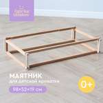 Продольный маятник для детской кровати имеет размер 98х52х19 см. Он идеально подходит для детской кровати от «Фабрики облаков». Маятник повторяет естественное укачивание и быстро успокаивает ребёнка. Изделие выполнено из массива бука, а механизм из пластика. Наличие стопоров позволяет при необходимости остановить качание. Маятник легко собирается благодаря не сложной конструкции, инструкция к нему идёт в комплекте.*