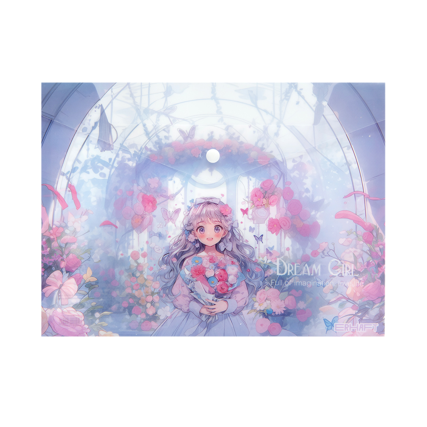 Папка Erhaft DR243018 серии «Мечты» выполнена в приятных сиренево-розовых тонах и декорирована в популярном стиле аниме. Подойдет для бережного хранения и транспортировки различных документов формата А4. Застежка-кнопка предотвратит случайное раскрывание.