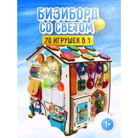 Если ваша цель – раннее всестороннее развитие малыша по методике Монтессори, обратите внимание на этот деревянный бизиборд домик со светом и розеткой. Яркий, интересный и функциональный развивающий комплекс от Evotoys станет любимой игрушкой ребенка на долгое время и поможет ему:• улучшить мелкую моторику и координацию движений,• развить логическое мышление и память,• выучить названия геометрических фигур и цветов,• овладеть искусством собирать пазлы и сортеры,• научиться завязывать шнурки и застегивать одежду,• расширить словарный запас.Также этот бизидом идеально подходит для сюжетно-ролевых игр – его можно использовать как гараж или кукольный дом с подсветкой и настоящим почтовым ящиком.А самое крутое, что с этим бизибордом ребенок может играть как с родителями, так и самостоятельно – крутя шестеренки, открывая и закрывая замочки, играя со шнуровкой.Обратите внимание: благодаря универсальному дизайну, такой детский игровой центр будет отличным бизибордом для мальчиков и бизибордом для девочек. Как и вся продукция от отечественного бренда Эвотойс, этот бизи дом:• сделан из прочной фанеры – экологически чистого материала,• окрашен красками на водной основе – безвредными и без запаха,• просто идеальный бизиборд для малышей от 1 года до 4-5 лет. Годовалые малыши смогут ощупывать и осматривать все детали на бизидомике – прочные, гладкие и красивые. А дети постарше будут учиться считать, развивать пространственное мышление и тренировать воображение. Вся продукция от Evotoys – деревянные доски, кубики и бизи домики, а также мягкие модели – сертифицирована. Поэтому вы можете быть уверены в безопасности каждого товара – от крохотного бизикуба, который удобно брать с собой в дорогу, до большого бизидома.А благодаря огромному количеству развивающих элементов этот бизидом заменит ребенку целую корзину обычных игрушек. И даст родителям возможность выпить чашку горячего чая или кофе, пока малыш занят увлекательной и полезной игрой!