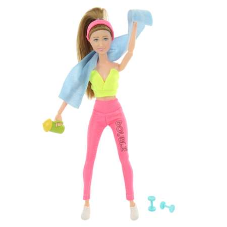 В набор входит кукла, коврик, две гантели, стакан. 5 предметов.