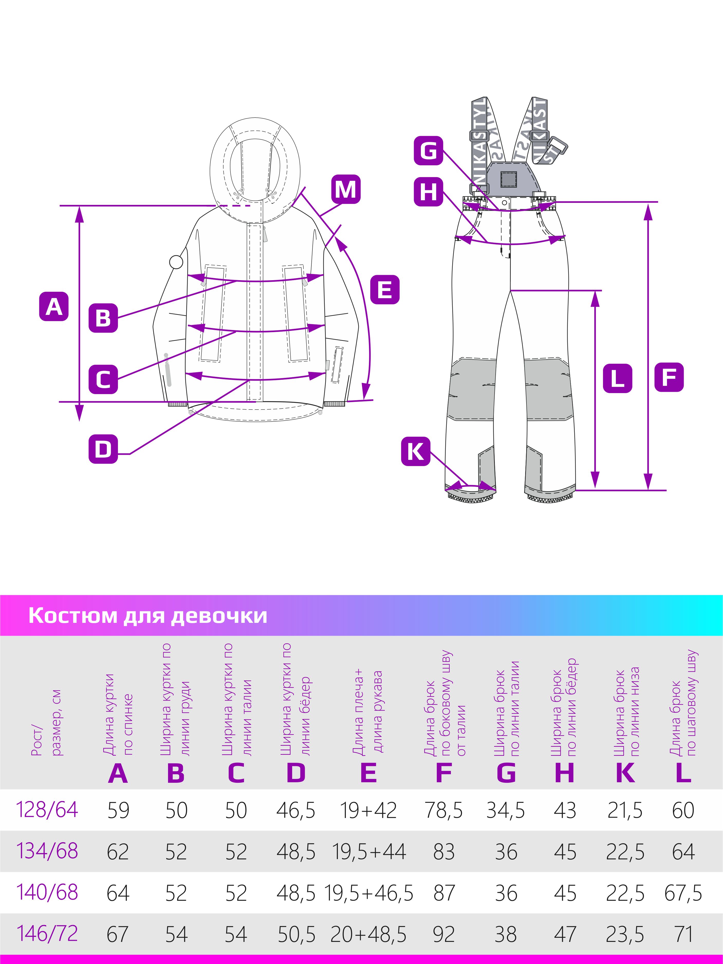 Зимний костюм для девочки из мембранной ткани 5000/5000 с водо- грязеотталкивающей технологией TEFLON. Ткань верха: МЕМБРАНА Teflon WR 5000/5000 (100% полиэстер). Подкладка: флис + п/э (100% полиэстер). Утеплитель: fiberlite. Куртка утеплитель 250 г, брюки утеплитель 150 г. Мембранная ткань – это непродуваемый и водонепроницаемый материал, который надежно защищает от ветра и влаги. Благодаря дышащим свойствам мембраны, утепленный костюм на флисе подростковый обеспечит комфорт ребенку в любую погоду, и он не вспотеет. Ткань куртки и полукомбинезона обработана снаружи экологически чистым протектором TEFLON для защиты от воды и грязи. Мембрана зимнего комплекта для подростков, в сочетании с утеплителем нового поколения FIBERlite, сохраняет тепло во время прогулок, позволяя телу дышать. Подкладка из флиса детского костюма растущего отводит влагу и имеет хорошие теплоизоляционные свойства. Стильная куртка оснащена центральной застежкой с ветрозащитной планкой и карманами на молнии. Костюм непромокаемый мембранный для детей однотонный со съемным капюшоном на молнии, кулисой для регулировки объема капюшона и по низу куртки, снегозащитной юбкой, с мягкими трикотажными манжетами в рукавах. Брючный костюм для девочки с карманом на рукаве под ски-пасс, внутренним карманом на молнии. Теплый костюм для детей снабжен внутренними бретелями для возможности снять куртку в помещении. Брюки на лямках оснащены регулируемыми бретелями, отстегивающейся спинкой, удобными карманами, снегозащитными муфтами, регулировкой объема брюк под обувь на молнии, подкладкой из флиса до середины бедра, светоотражающими элементами для безопасности ребенка в темное время суток. Область колен и шов сидения проклеены, места повышенного трения выполнены из усиленной ткани. Куртка и штаны зимние на лямках для подростка девочки подойдут для горнолыжного отдыха (горнолыжка). Верхняя одежда для девочки арт. 7з6024 ГАЛАКТИКА. Комфортная температура эксплуатации от 0°С до -25°С. Гарантийный срок 30 календарных дней.