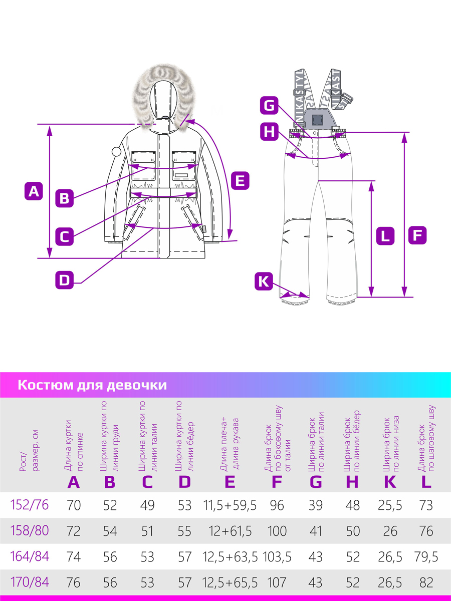 Зимний костюм для девочки из мембранной ткани 5000/5000 с водо- грязеотталкивающей технологией TEFLON. Ткань верха: МЕМБРАНА Teflon WR 5000/5000 (100% полиэстер). Подкладка: флис + п/э (100% полиэстер). Мех опушки : искусственный. Утеплитель: fiberlite. Куртка утеплитель 250 г, брюки утеплитель 150 г. Мембранная ткань – это непродуваемый и водонепроницаемый материал, который надежно защищает от ветра и влаги. Благодаря дышащим свойствам мембраны, утепленный костюм на флисе подростковый обеспечит комфорт ребенку в любую погоду, и он не вспотеет. Ткань куртки и полукомбинезона обработана снаружи экологически чистым протектором TEFLON для защиты от воды и грязи. Мембрана зимнего комплекта для подростков, в сочетании с утеплителем нового поколения FIBERlite, сохраняет тепло во время прогулок, позволяя телу дышать. Подкладка из флиса детского костюма растущего отводит влагу и имеет хорошие теплоизоляционные свойства. Стильная куртка оснащена центральной застежкой с ветрозащитной планкой и карманами на молнии. Костюм непромокаемый мембранный для детей однотонный со съемным капюшоном и меховой опушкой на молнии, кулисой для регулировки объема капюшона и по низу куртки, с мягкими трикотажными манжетами в рукавах, верхними накладными карманами с клапанами на кнопках, внутренним карманом на молнии. Практичный экологичный мех на капюшоне брючного костюма для девочки не вызывает аллергии, не осыпается, легко чистится. Теплый костюм для детей снабжен съемным поясом из стропы для создания приталенного силуэта, а внутренние бретели позволят снять куртку в помещении. Брюки на лямках оснащены регулируемыми бретелями, отстегивающейся спинкой, удобными карманами, снегозащитными муфтами, подкладкой из флиса до середины бедра, светоотражающими элементами для безопасности ребенка в темное время суток. Область колен и шов сидения проклеены. Куртка и штаны зимние на лямках для подростка девочки подойдут для горнолыжного отдыха (горнолыжка). Верхняя одежда для девочки арт. 7з7424 АЙСБЕРГ. Комфортная температура эксплуатации от 0°С до -25°С. Гарантийный срок 30 календарных дней.