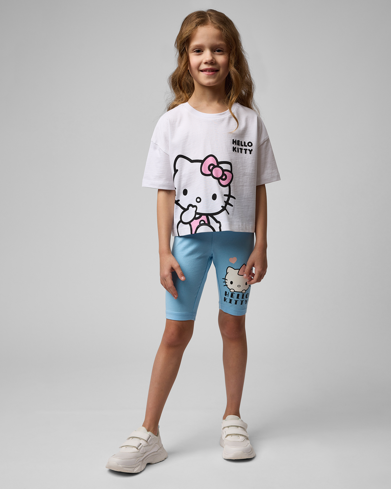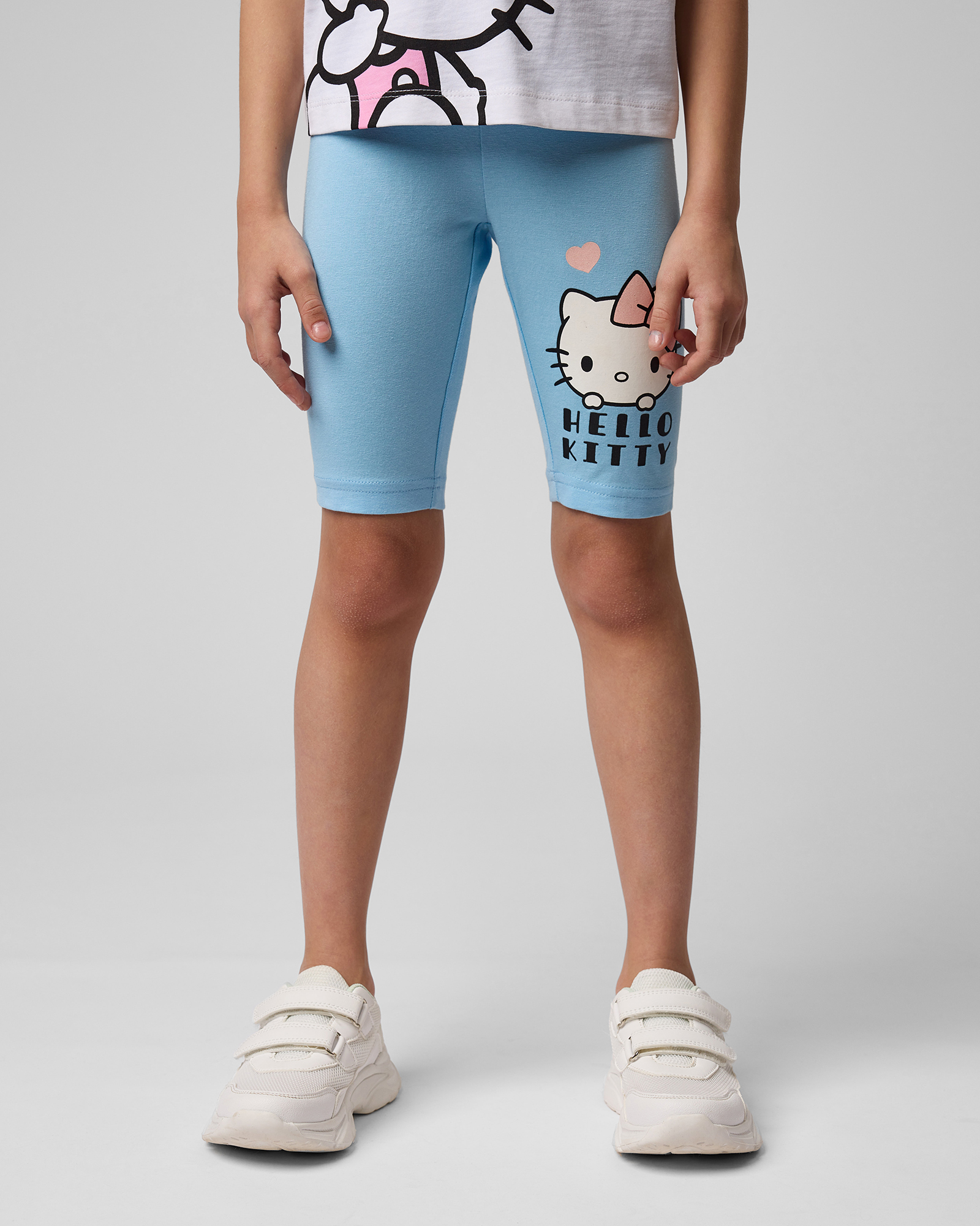 Голубые велосипедки для девочки Hello Kitty с цветным принтом.