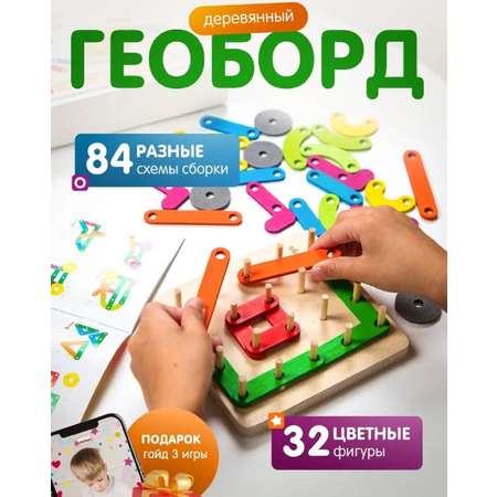 Геоборд деревянный детский (32 детали, 84 задания) Alatoys нейротренажер для малышей развивающий Монтессори
