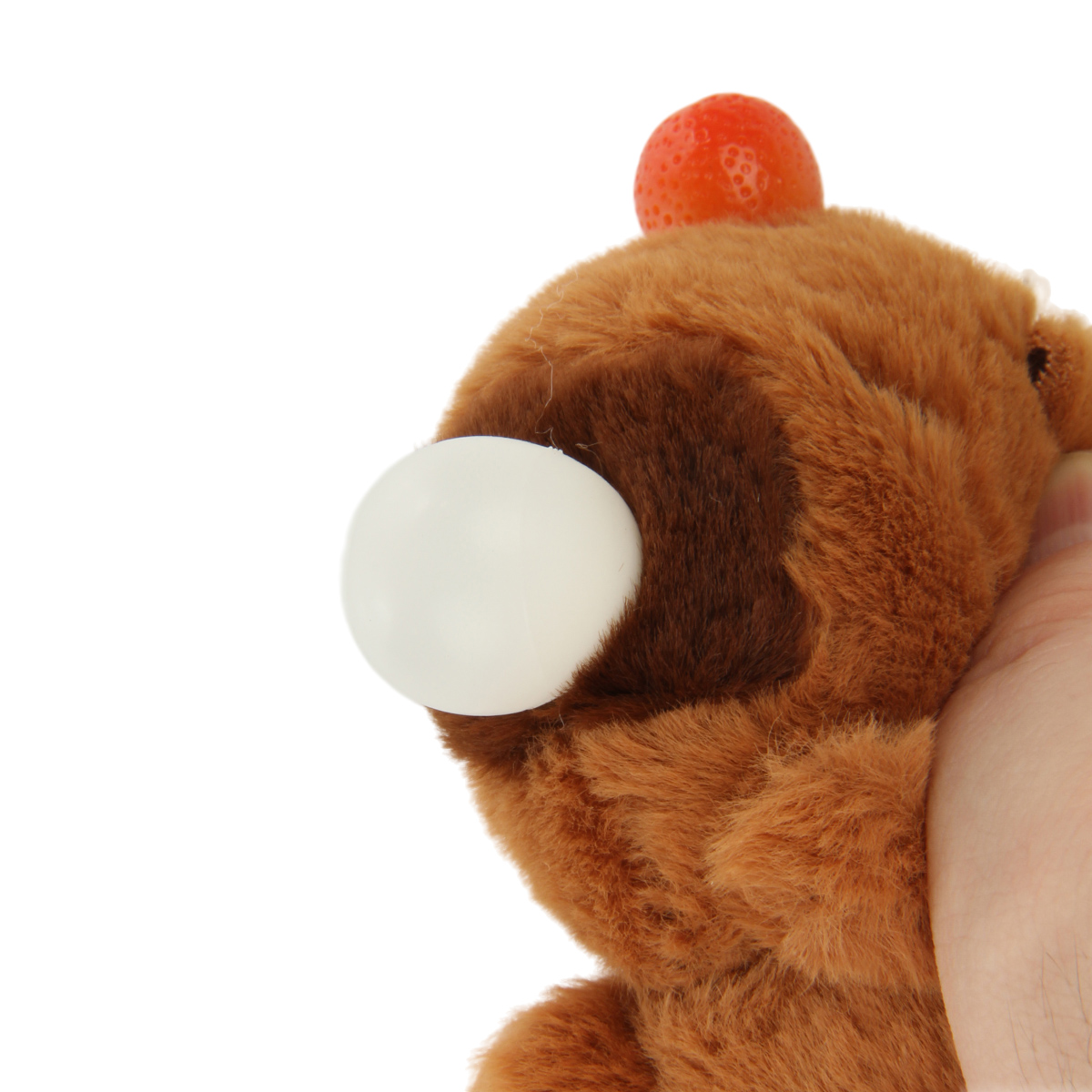 У игрушки есть металлический бубенчик, звенит, если потрясти, имеется кольцо для закрепления в качестве брелока.