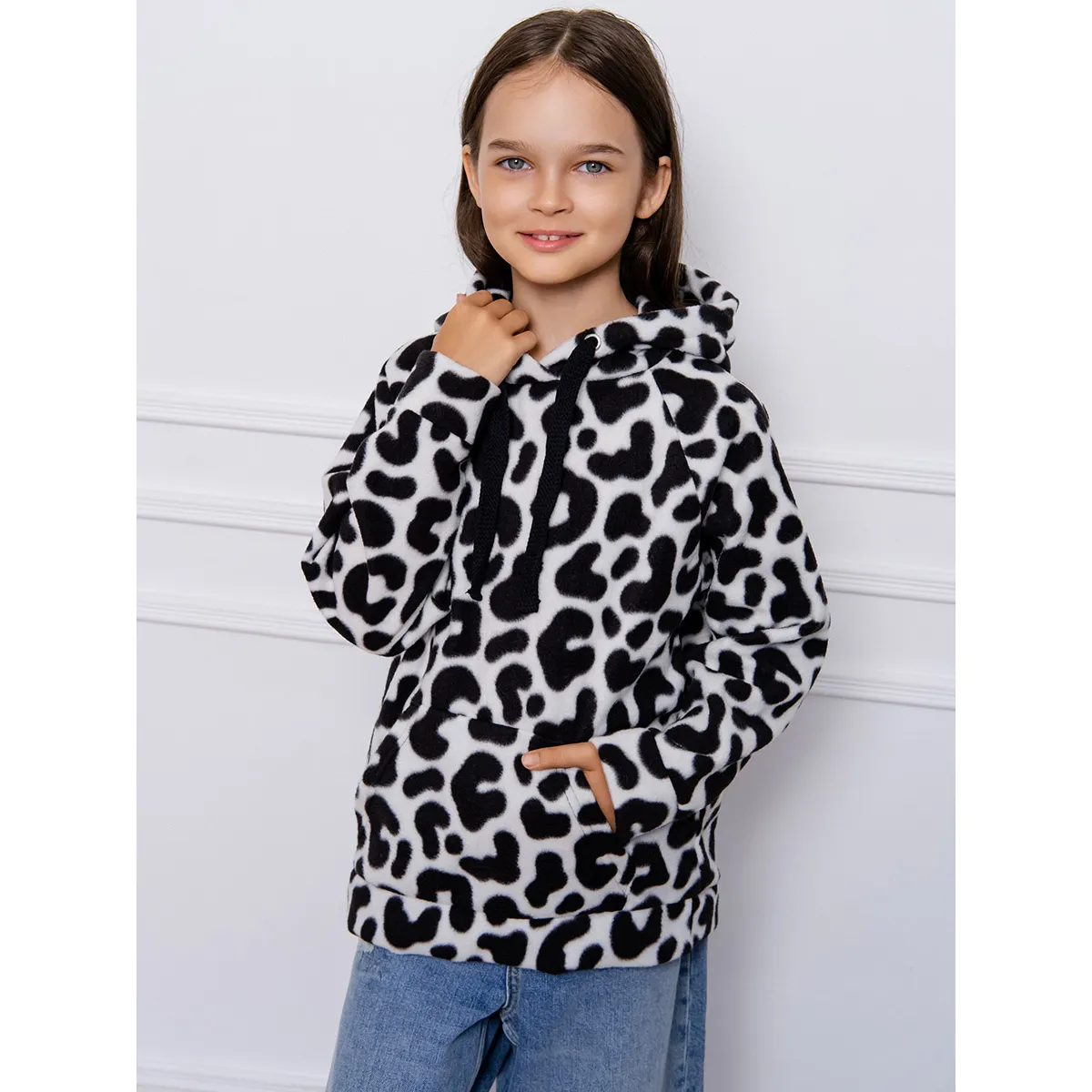 Кофта флисовая для девочки с капюшоном. Спереди карман-кенгуру.