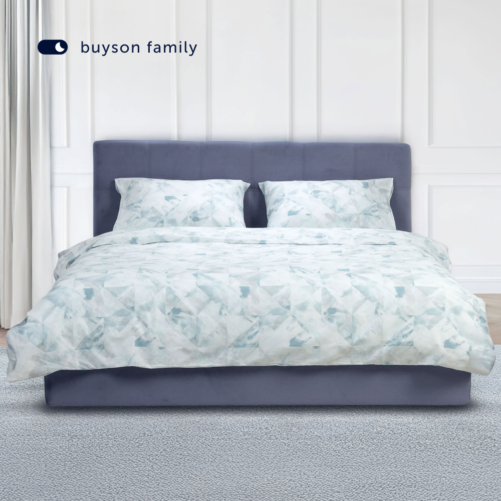 Стильный комплект постельного белья из премиальной линейки buyson family выполнен в трендовом дизайне: однотонная простыня и принтованные наволочки и пододеяльник с абстрактным рисунком.
