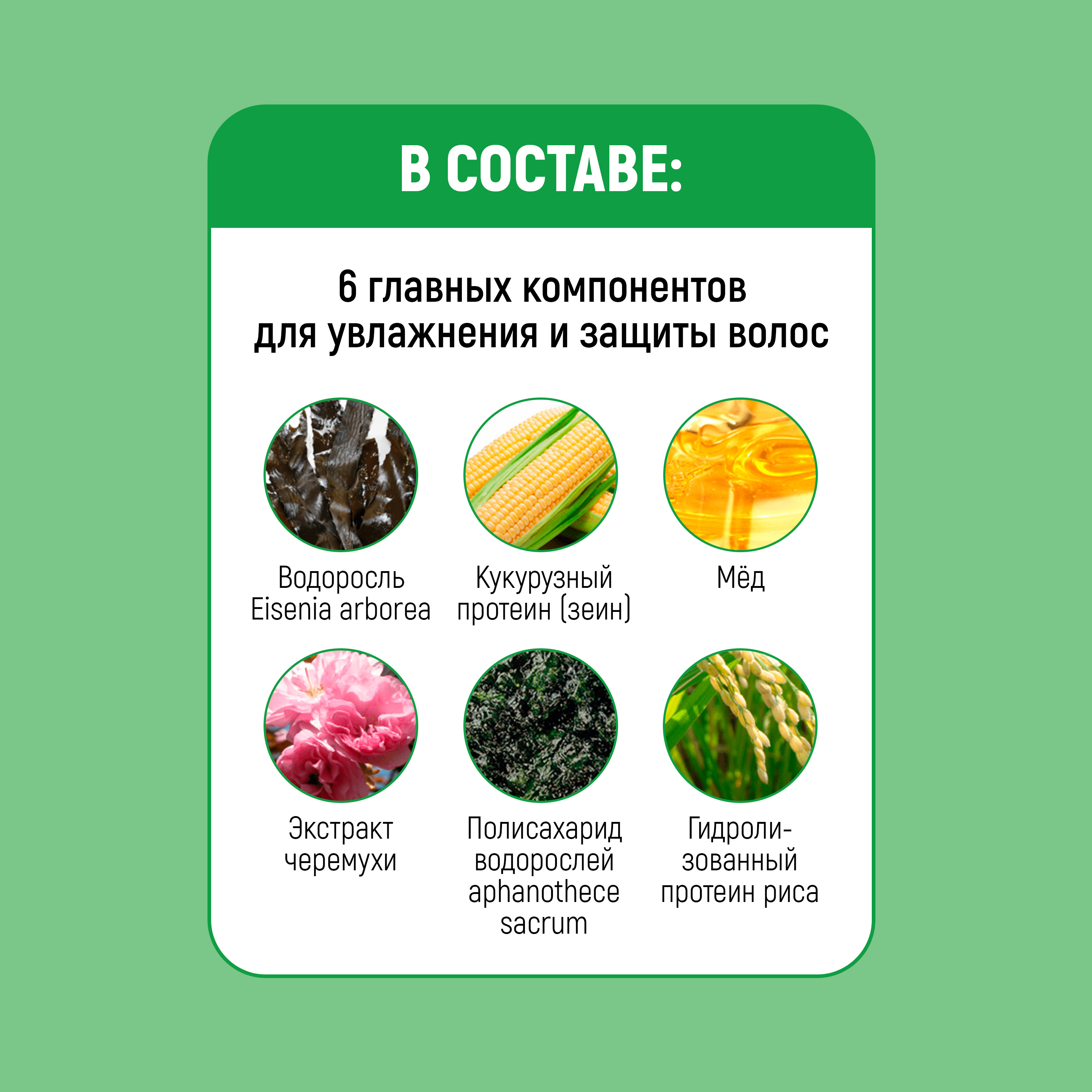 ✔ В составе бальзама 10 натуральных экстрактов растений, органические протеины, масла, витамины и фруктовые кислоты. Такое сочетание укрепляет волосы и предотвращает появление секущихся кончиков.