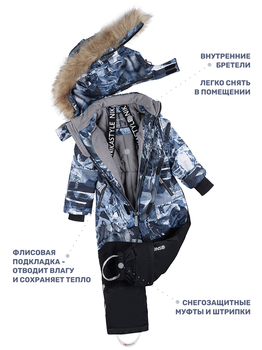 Комбинезон зимний для мальчика из мембранной ткани 5000/5000 с водо- грязеотталкивающей технологией TEFLON. Ткань верха: МЕМБРАНА BREATEX Teflon WR 5000/5000 (100% полиэстер). Подкладка: флис + п/э (100% полиэстер). Мех опушки: искусственный. Утеплитель: fiberlite 250 г. Мембранная ткань - это непродуваемый и водонепроницаемый материал, который надежно защитит от ветра и влаги. Благодаря дышащим свойствам мембраны, комбинезон утепленный обеспечит ребенку комфорт в любую погоду, и он не вспотеет. Ткань комбинезона детского зимнего классического обработана снаружи экологически чистым протектором TEFLON для защиты от воды и грязи. Мембрана слитного комбинезона для мальчика, в сочетании с утеплителем нового поколения FIBERlite, сохраняет тепло во время прогулок, позволяя телу дышать. Подкладка из флиса растущего комбинезона для детей отводит влагу и имеет хорошие теплоизоляционные свойства. Комбинезон мембранный для малыша оснащен центральной застежкой с ветрозащитной планкой и карманами на молнии. Комбез зимний для мальчика модный со съемным капюшоном и меховой опушкой на молнии, с кулисой для регулировки объема. Практичный экологичный мех капюшона комбинезона непромокаемого детского не вызывает аллергии, эффектно выглядит, исключает осыпание, легко чистится. Комбинезон теплый для мальчика снабжен резинкой на спинке для лучшего прилегания, а внутренние бретели позволят снять верхнюю часть изделия в помещении. Комбинезон утепленный уличный дополнительно оснащен мягкими трикотажными манжетами в рукавах, подкладкой из флиса до середины бедра, снегозащитными муфтами на брючинах, силиконовыми штрипками, светоотражающими элементами для безопасности ребенка в темное время суток. Область колен и шов сидения проклеены, места повышенного трения выполнены из усиленной ткани. Зимний мембранный комбинезон для ребенка подойдет для горнолыжного отдыха (горнолыжка). Верхняя одежда для мальчика зима арт. 8з0924 ГРАНЖ. Комфортная температура эксплуатации от 0°С до -25°С. Гарантийный срок 30 календарных дней.