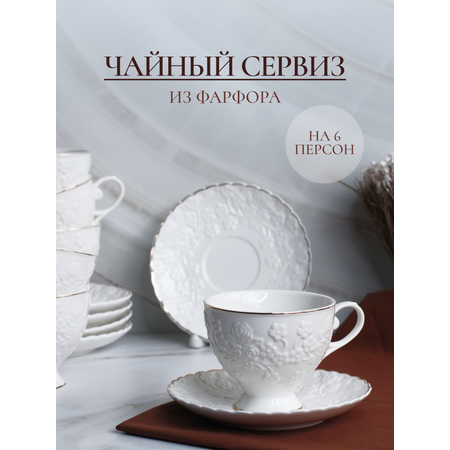 Погрузитесь в атмосферу изысканного чаепития с этим элегантным фарфоровым чайным сервизом на 6 персон. Набор, состоящий из 12 предметов, станет жемчужиной вашей коллекции посуды и идеальным решением для торжественного приема гостей, семейных воскресных завтраков или создания особого настроения в будни.