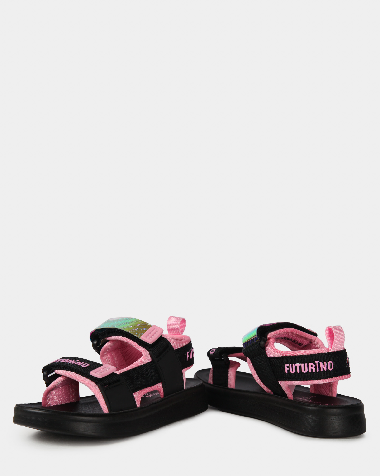 Сандалии для девочки Futurino в чёрно-розовом цвете, с блестящим ремешком.