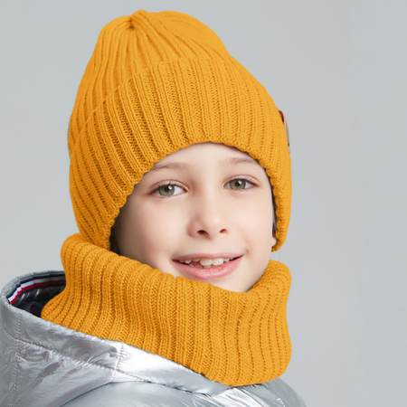 Однотонный детский зимний комплект с отворотом для девочки. Состоит из шапки и шарфа в виде снуда (два в одном). Товары под брендом KUBRIO изготавливаются в России из пряжи производства Турции: шерсть с добалением акрила (50% шерсти, 50% акрил). Комплект подходит для температуры воздуха от -20 до +5 градусов (зима, демисезон: холодная весна и холодная осень). У шапки для утепления предусмотрен отворот и подклад из флиса. У снуда также флисовая подкладка, снуд широкий: складывается в два раза. Материал мягкий и хорошо тянется, не жмет и не давит голову ребенка, не колется. Форма шапки: бини, тыковка, луковка. Шарф также называют бафф, хомут или шарф-труба по форме его изготовления. Комплект подходит для ежедневной носки, ношения в школу, детский сад, прогулок, спорта, бега, лыж. Комплект представлен в размере для возраста от 5 до 12 лет, что соответствует диаметру головы от 52 до 56 см. Данная зимняя - осенняя модель представлена в нескольких цветах. Товар сертифицирован в соответствии со стандартами ЕАЭС (ГОСТ) как головные уборы для детей старше одного года и подростков. Для ухода за изделием рекомендуем деликатную стирку при 30 градусах.