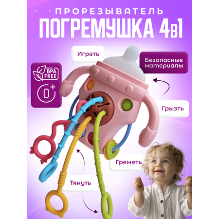 Погремушка-прорезыватель Бутылочка розовая Mamagoods