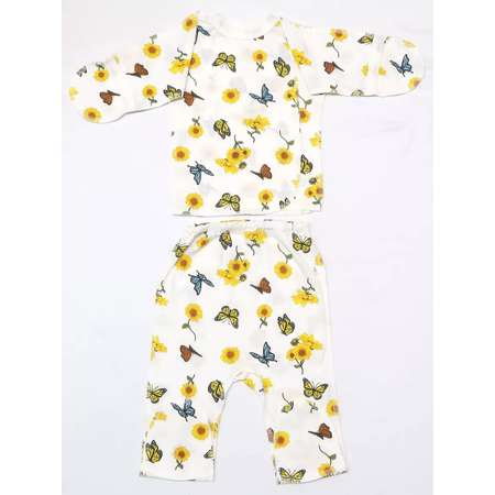 Комплект из тонкого трикотажа. Распашонка с двумя застежками на плечах, по одной с каждой стороны. Закрытая ручка на распашонке открывается и можно достать ручку малышу. Ползунки с ластовицей. Сшит их ткани кулирка (кулирная гладь) гладкое и тонкое трикотажное полотно, 100% хлопок, самый тонкий вид трикотажа.