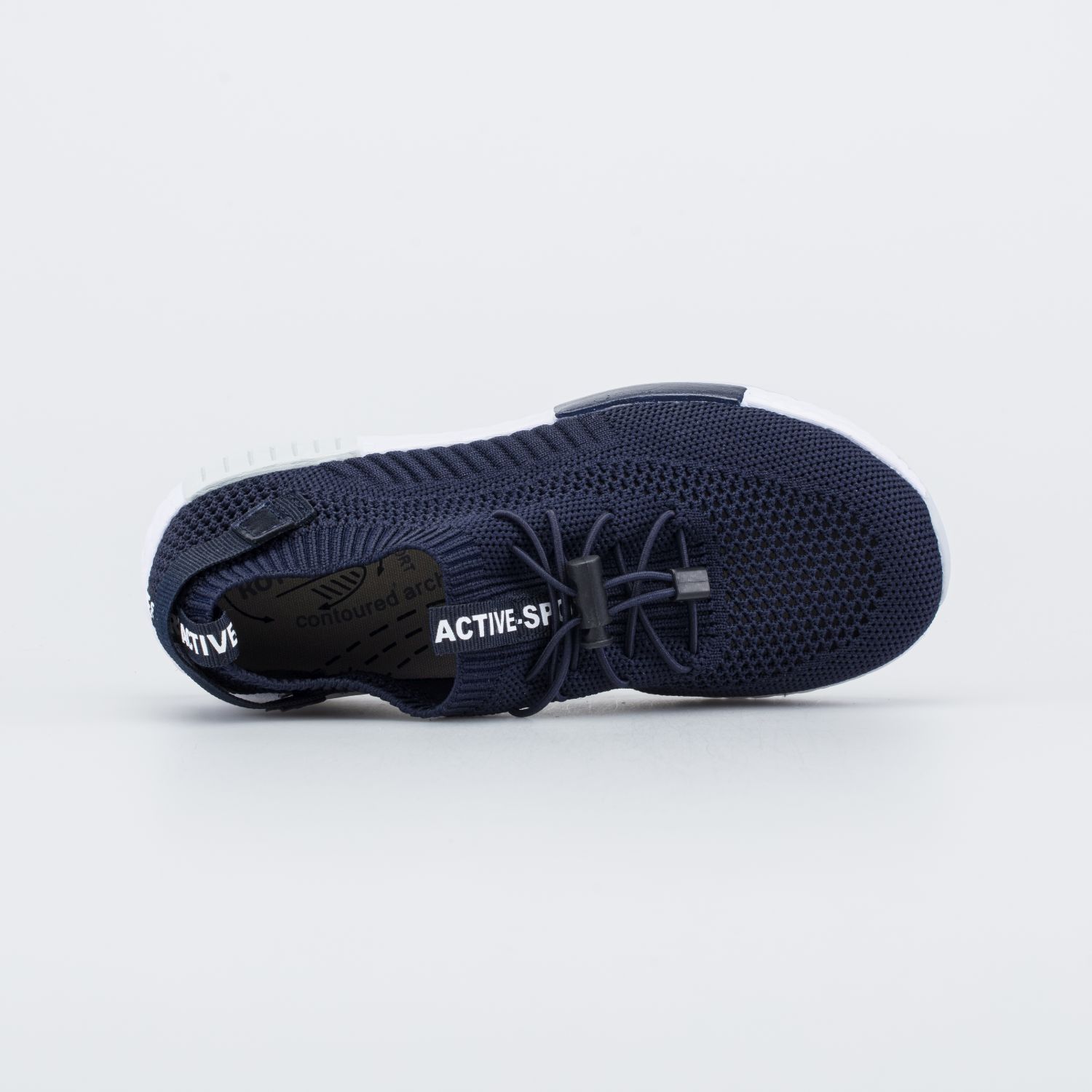 Супердышащие кроссовки-носки синего цвета подходят для мальчика-подростка.Верх выполнен из вязаного текстиля на основе гипоаллергенного полиэстера. Подкладка отсутствует, поэтому вентиляции ничего не мешает.Стелька из 100% хлопка отводит от стоп влагу. Шнурки-резинки с фиксатором позволяют отрегулировать обувь по ноге, а также быстро обуваться и разуваться. Очень легкая и амортизирующая подошва из ЭВА (этиленвинилацетата) дополнена термопластичной резиной для придания износостойкости. Модель анатомически правильная: имеет небольшую приподнятость задней части по отношению к носочной и круглый носок. Формованная стелька поддерживает стопу в правильном положении. Все это положительно влияет на развитие стоп и опорно-двигательного аппарата.