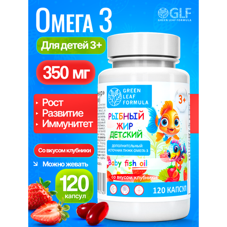 Детский рыбный жир в капсулах со вкусом клубники для детей от 3 лет, для роста и развития ребенка, витамины для школьников и подростков.