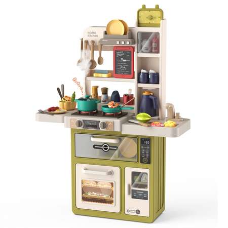 Перед вами игровой набор-кухня "Готовим вкусно", выполненный в классическом стиле. Кухня сборная и большая - 85х61 см. С одной стороны есть функциональная раковина с краном, из которого льётся вода, по центру - конфорки и духовка. С другого бока расположена рабочая столешница.
