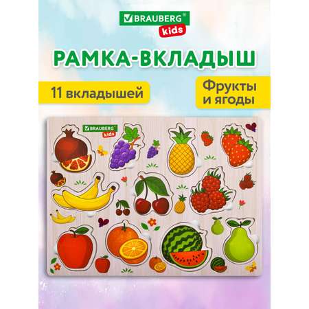 Рамка вкладыш BRAUBERG KIDS деревянная Монтессори сортер для малышей Фрукты и ягоды