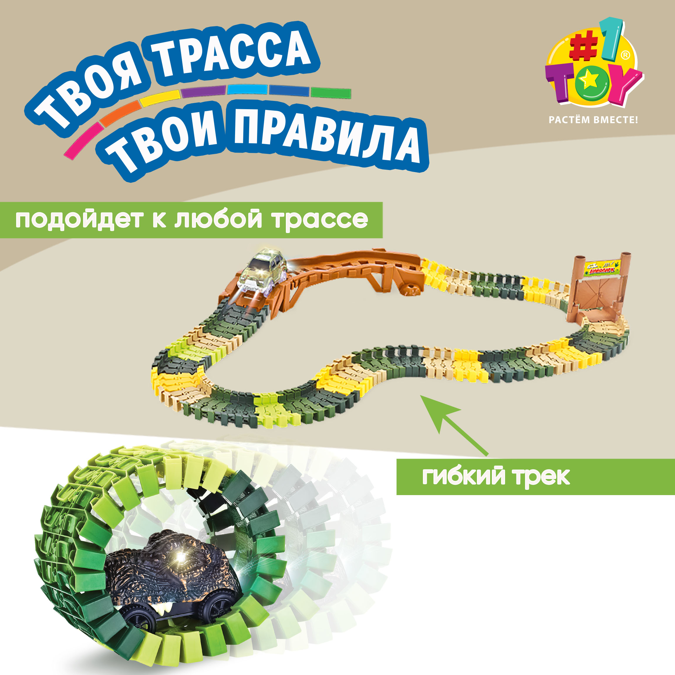 Гибкий трек с динозаврами «Динопарк» от 1TOY станет проводником в захватывающую вселенную скоростных состязаний, где светящаяся машинка мчится не только вдоль ровных трасс, но и смело покоряет выпуклую или вогнутую дорогу, а если трассу «закольцевать», то мгновенно овладевает головокружительными кольцевыми маневрами. Собранная трасса для машинок может варьироваться в размерах в зависимости от конфигурации, которую вы выберете. Этот авто трек с машинкой детский содержит 25 деталей. Одна из выдающихся особенностей этой игрушки для мальчиков – автотрек с машинкой можно "закольцевать", заставив машинку ехать внутри него, словно хомячка внутри специального круга. Машинка для трека работает от одной батарейки АА (не входит в комплект).