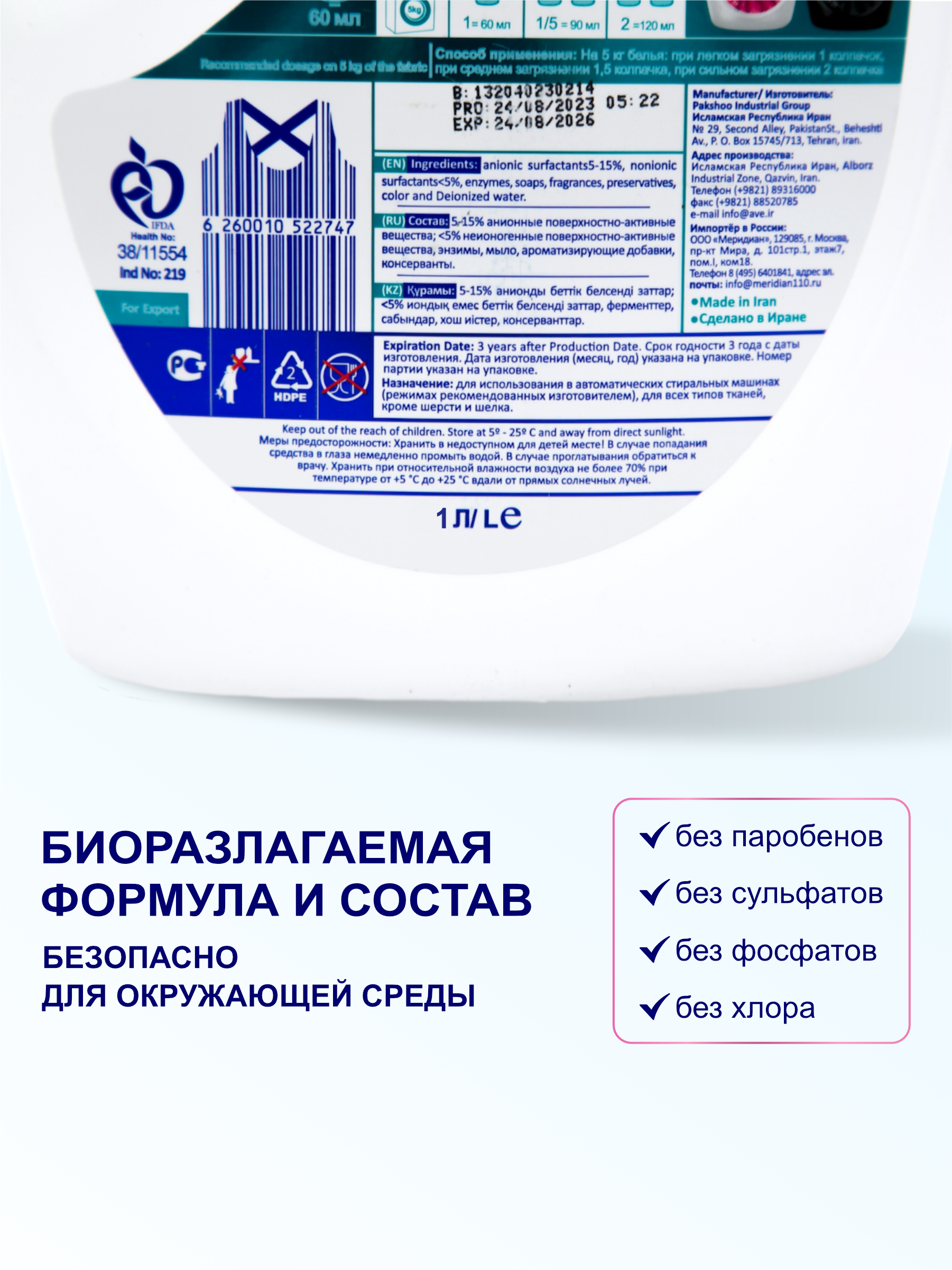 Био разлагаемая формула Геля для стирки AVE универсальный не содержит хлора, парабенов и фосфатов, гель безопасен для окружающей среды.