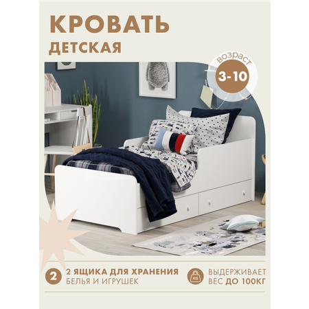 Кроватка с ящиками белая 160*80 Алатойс подростковая детская деревянная